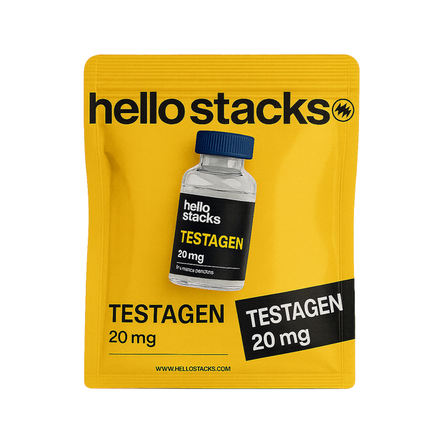 Testagen is a research peptide studied for its potential to support testosterone levels, muscle strength, and metabolic function. Its role in hormonal pathways may also contribute to recovery, cellular health, and anti-aging research.